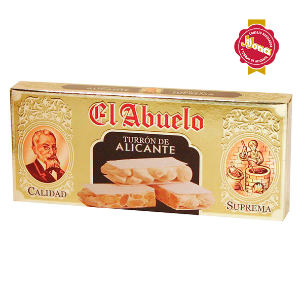 Denominación del alimento, Calidad, Ingredientes, Alérgenos, Cantidad neta, Información nutricional, Fecha de consumo preferente, No de lote, Condiciones de conservación, Razón social y dirección, Fabricado en Jijona (España), Logo IGP, Logo Jijona